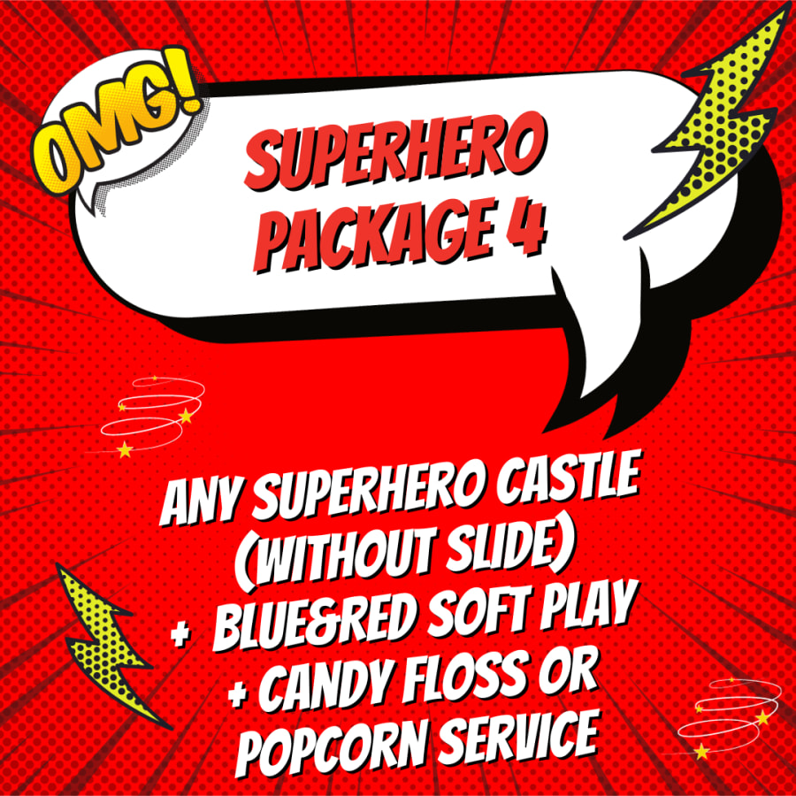1) Superhero Bouncy Castle (you can choose the size and colour on booking)